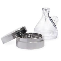 Grinder Argento a Imbuto in Alluminio da Ø56mm composto da 3 parti. La forma ad imbuto è perfetta per riempire pipe o bong in modo semplice, rapido e senza sprechi!
