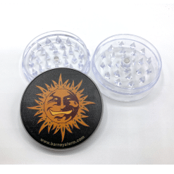 Grinder Barney’s Farm con disegnato il famoso marchio del sole in Plastica da Ø60mm composto da 2 parti.